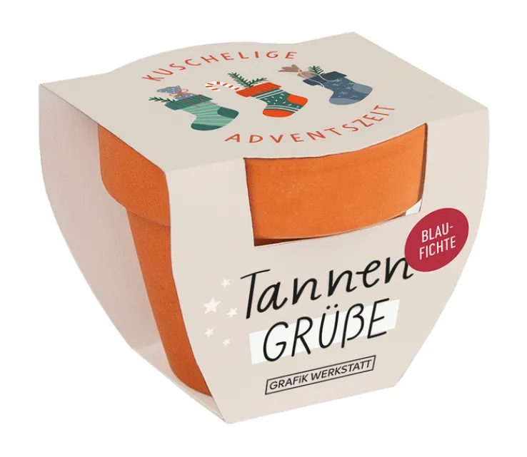 Dieser Anzuchttopf aus der Serie TANNENGRÜßE besteht aus Terrakotta und ist für den Innenbereich geeignet. Das Produkt hat eine kompakte Größe mit einer Länge von 5,7 cm, einer Breite von 6 cm und einer Höhe von 5 cm. Das Gewicht beträgt 0,058 kg. Die Hauptfarbe des Topfes ist das charakteristische, warme Terrakotta-Beige. Die Verpackung zeigt ein Motiv mit weihnachtlichen Strümpfen und dem Schriftzug ‚Kuschelige Adventszeit‘, ergänzt durch die Angabe ‚BLAU-FICHTE‘. Diese Gestaltung unterstreicht den saisonalen Charakter des Produkts. Das Material besteht aus Keramik und Naturmaterialien. Das klar erkennbare, schlichte Design des Topfes wird durch die weihnachtliche Verpackung mit grafischen Elementen und Text ergänzt.