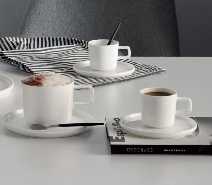 Das 6er-Set der Kaffeetasse OCO mit Untertasse in Weiß ist mit seinem zeitlos schlichten Design für den privaten Einsatz und die Gastronomie geeignet. Die Tassen sind aus Fine Bone China, der hochwertigsten Keramik, gefertigt und zeichnen sich durch ihre enorme Härte und einen strahlend weißen Glanz aus.