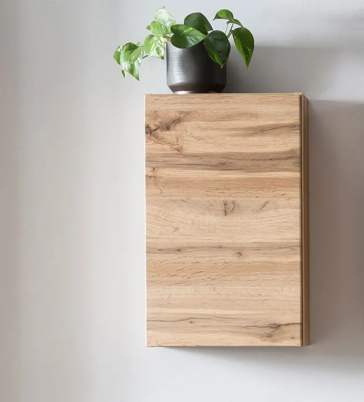 Platzsparend: Der Hängeschrank bietet zusätzlichen Stauraum und hilft, die Badezimmeroberfläche frei zu halten.