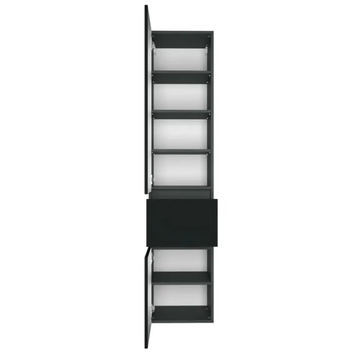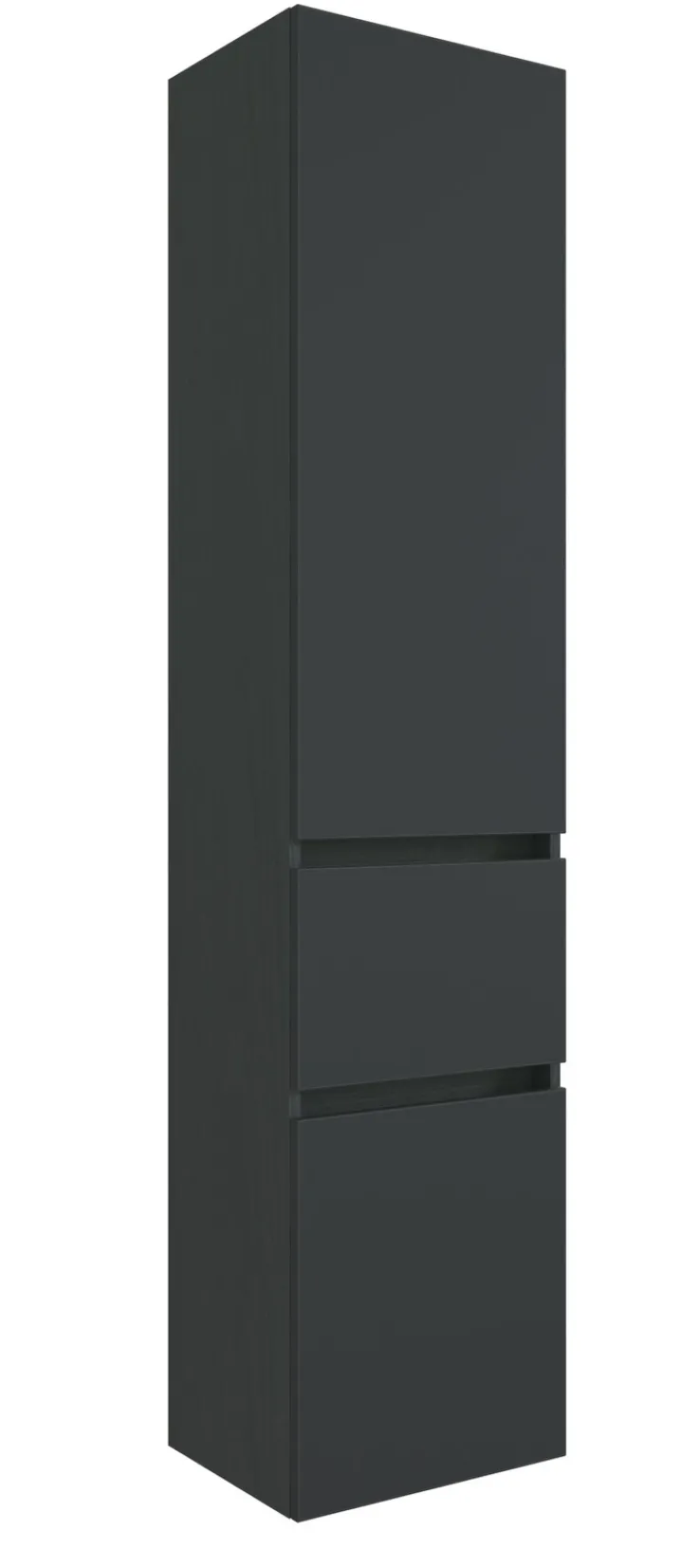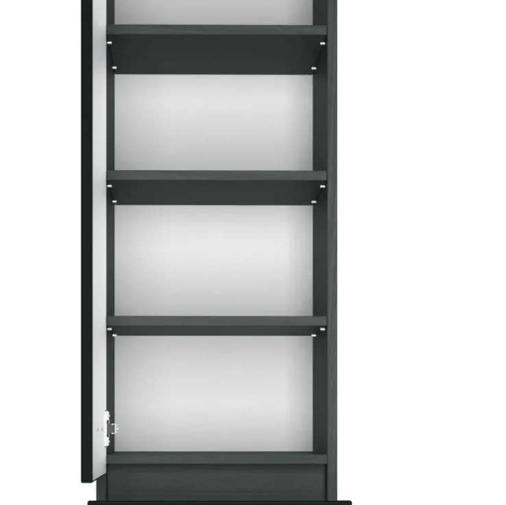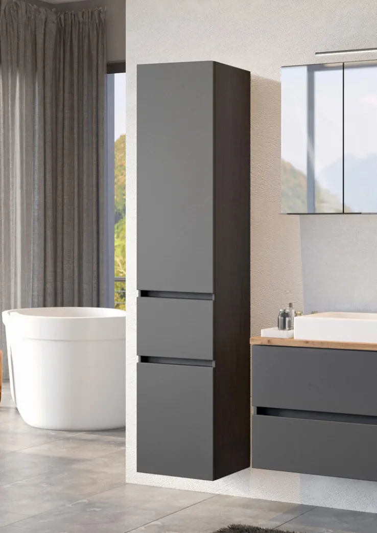 Den Bad-Seitenschrank BREGENZ mit den Maßen 40 x 180 cm gibt es in den Farbvarianten grau, weiß und braun. Die mattgraue Schrankvariante besticht durch ihre modern minimalistische Optik, die jedes Badezimmer bereichert. Der schmale Hochschrank mit silberfarbenen Kunststofffüßen und einer Tiefe von 35 cm schafft auch in kleinen Bereichen viel zusätzlichen Stauraum, um Badezimmerbedarf griffbereit zu verstauen.