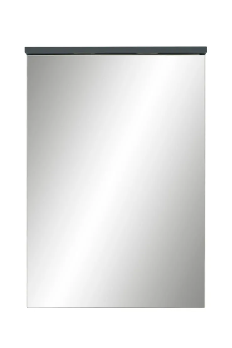 Der Spiegelschrank ist mit einer Tür ausgestattet, die über ein Soft-Close-System verfügt, um ein sanftes und geräuschloses Schließen zu gewährleisten. Im Inneren befinden sich zwei Einlegeböden, die für eine übersichtliche Aufbewahrung sorgen. Eine integrierte Beleuchtung sorgt für optimale Lichtverhältnisse beim täglichen Gebrauch. Das Material besteht aus einer Kombination von Glas und Holznachbildung, was dem Schrank eine robuste und langlebige Struktur verleiht. Dieses Möbelstück ist die perfekte Ergänzung für jedes moderne Badezimmer.