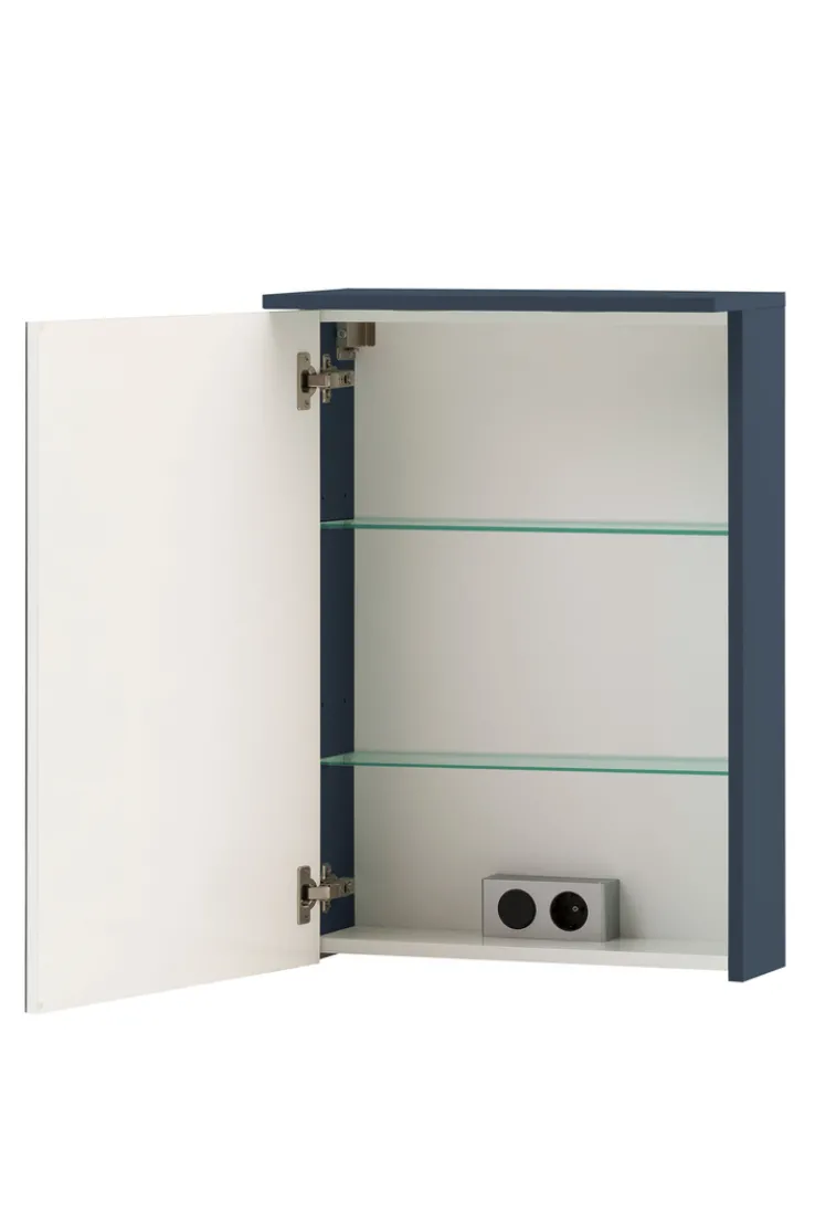 Der moderne Bad Spiegelschrank der Serie Jesper vereint Funktionalität und stilvolles Design. Mit einer Breite von 50,4 cm, einer Höhe von 72,3 cm und einer Tiefe von 15,9 cm bietet er ausreichend Platz für Ihre Badezimmerutensilien. Der Schrank verfügt über eine Spiegelfront aus hochwertigem Spiegelglas, die nicht nur praktisch, sondern auch ästhetisch ansprechend ist. Die Hauptfarbe des Schranks ist ein elegantes Dunkelblau, das einen schönen Kontrast zur klaren Spiegelfläche bildet.