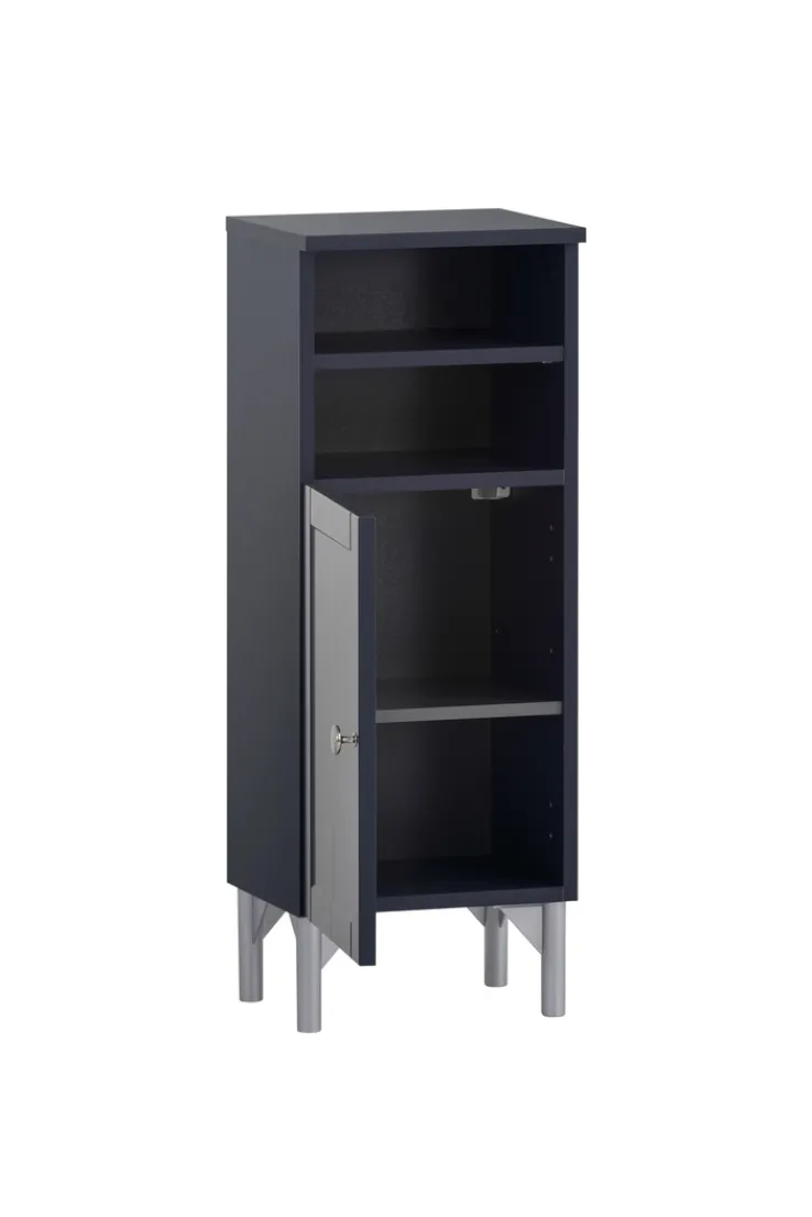 Der Unterschrank für das Bad präsentiert sich in einem modernen Design und überzeugt durch seine funktionalen Eigenschaften. Mit einer Breite von 30,3 cm, einer Höhe von 70 cm und einer Tiefe von 25,4 cm bietet er ausreichend Stauraum für diverse Badutensilien. Der Schrank ist in einem eleganten Nachtblau gehalten, das dem Raum eine stilvolle Note verleiht. Die Holznachbildung sorgt für eine robuste und pflegeleichte Oberfläche.