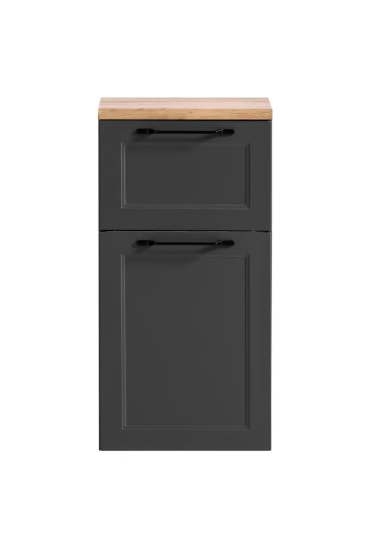 Der attraktive Bad- Unterschrank LÜTTICH in stilvollem Grau mit einer Breite von 40cm vereint mehrere Vorteile in sich. So ist das schöne Möbelstück, das in matt-grauem Look beeindruckt, mit einem Schubkasten, einer Drehtür und einem Einlegeboden ausgestattet. Praktischerweise verfügt die integrierte Schublade über eine Soft-Close-Funktion. Dadurch wird der Bad- Unterschrank LÜTTICH grau 40cm zusätzlich aufgewertet.