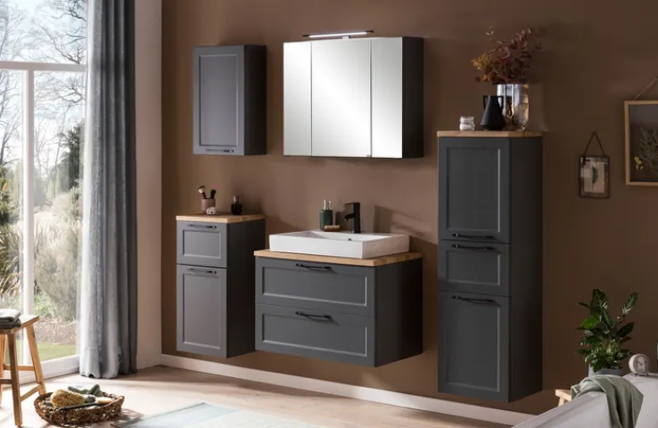 Der LÜTTICH Bad-Unterschrank verfügt über vier Möbelfüße, die den richtigen Stand verleihen. Dank der Höhe von 79 cm und der Tiefe von 35 cm ist jede Menge Stauraum vorhanden. Die Ablageplatte ist ein weiterer Aspekt, der die Funktionalität des Unterschranks in den Fokus rückt. Denn so haben Deko-Utensilien, aber auch Beauty- und Pflegeaccessoires immer den idealen Platz.