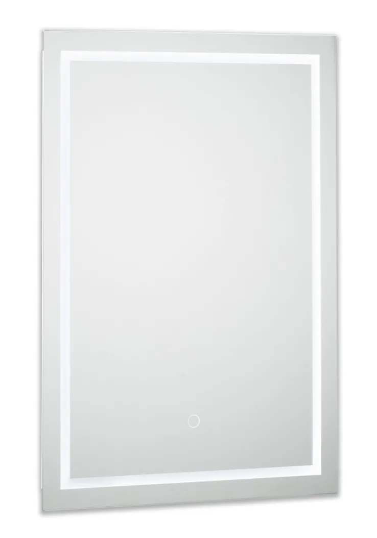 Besonders hervorzuheben ist die integrierte Beleuchtung, die den Spiegel umrahmt und für eine gleichmäßige Ausleuchtung sorgt. Diese Funktion ist nicht nur praktisch, sondern verleiht dem Spiegel auch eine stilvolle Note. Die rechteckige Form und das schlichte Design machen ihn zu einem vielseitigen Einrichtungsgegenstand, der sich sowohl in modernen als auch in klassischen Interieurs gut einfügt.