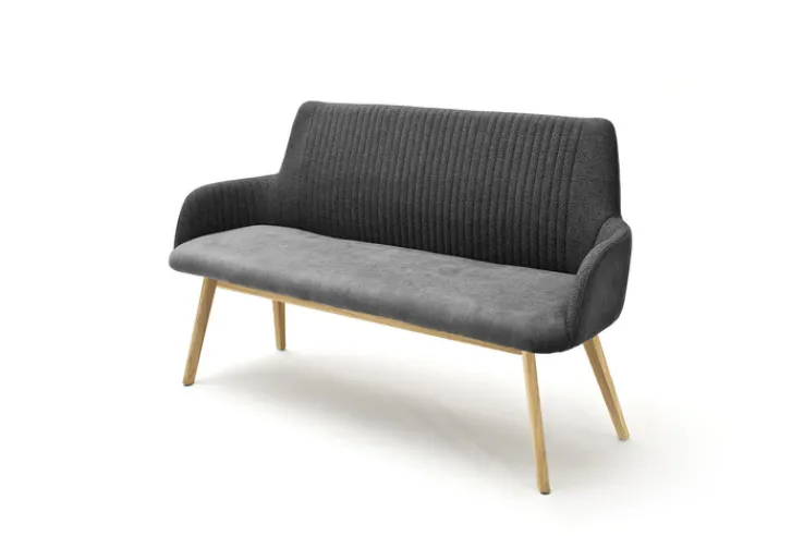 Ihr Design ist sehr zeitlos und edel, was besonders durch die Rillenstruktur in der Rückenlehne zum Ausdruck kommt. Das Gestell ist massiv gearbeitet, geölt und der robuste Bezug aus Textil.