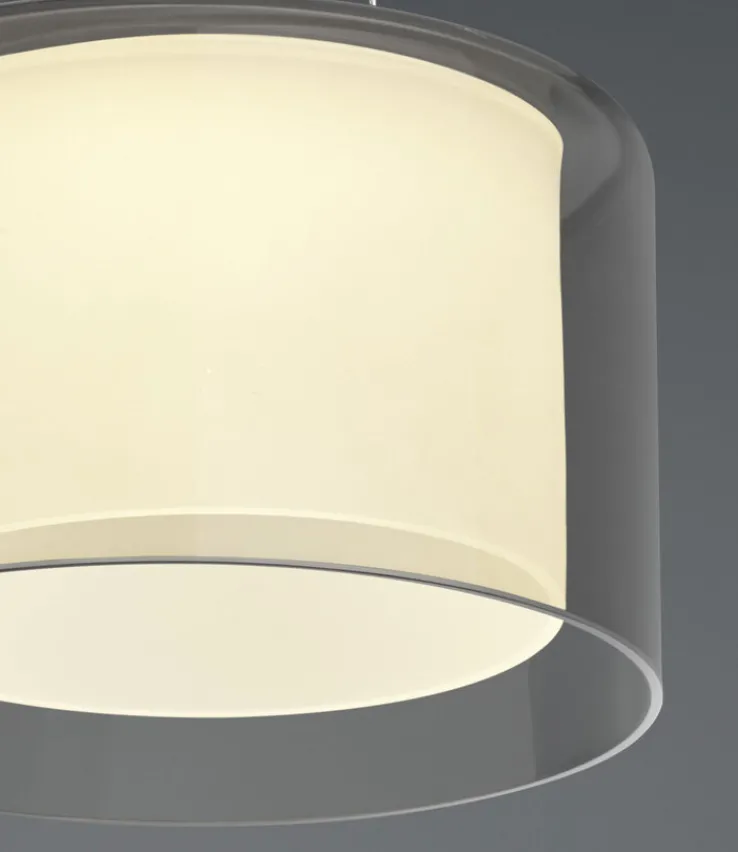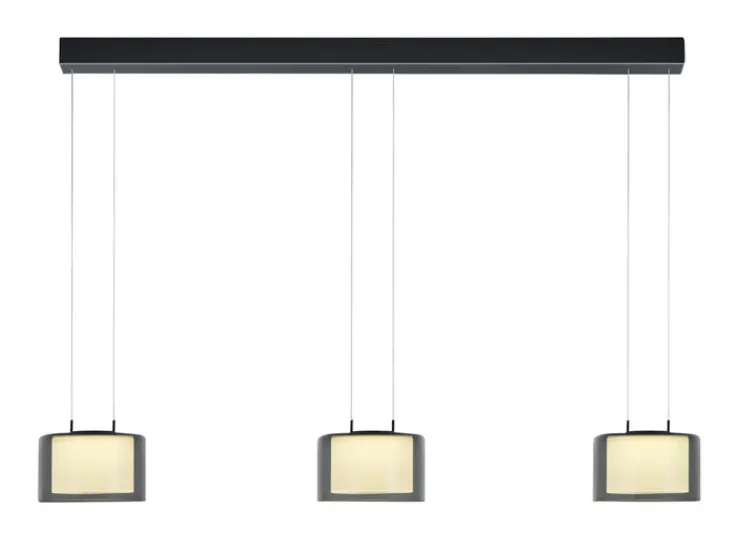 Drei LED-Leuchtmittel sind in der LED Pendellampe GRAND SMOKE von BANKAMP fest installiert. Zusammen haben sie einen Energieverbrauch von 66 Watt und eine Lichtleistung von 6000 Lumen. Die BANKAMP LED Pendellampe GRAND SMOKE ist dimmbar, sodass sich ihre Lichtfarbe zwischen 2200 und 2700 Kelvin variieren lässt. Die Brenndauer beträgt rund 35.000 Stunden. Der adrette Einrichtungsgegenstand ist modern gestaltet. Er findet über dem Esstisch oder dem Wohnzimmertisch einen idealen Platz.