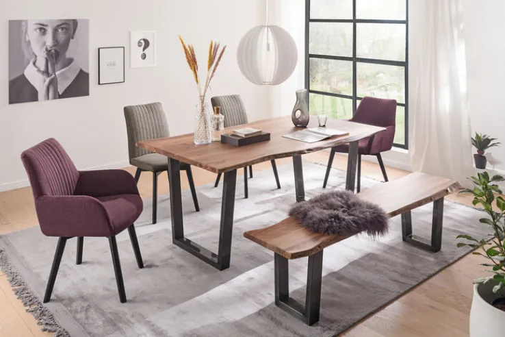 Das Bankgestell CALABRIA besteht aus zwei Kufen-Gestellen in Trapezform. Jedes Gestell hat eine Größe von 33 x 44 x 8 cm. Hergestellt aus robustem, grauem Metall, ist das Bankgestell sehr belastbar. Mit dem antiken Finish harmoniert das Kufengestell perfekt mit der Bankplatte der Serie aus Akazienholz. Die angesagte Optik mit rustikalem Flair passt hervorragend in modern gestaltete Esszimmer und zieht auf im offenen Wohn-Essbereich alle Blicke auf sich.