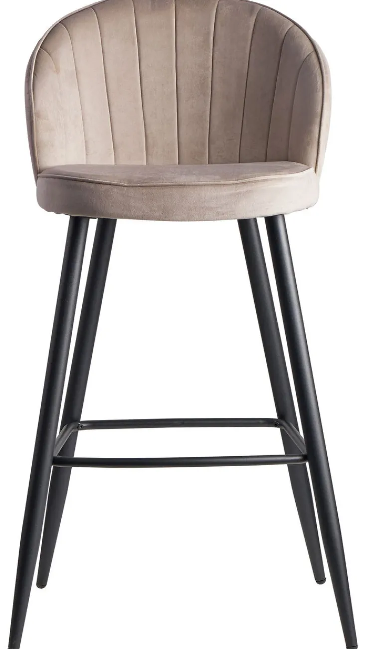 Der Barhocker mit Rückenlehne in der Farbkombination Schwarz/ Beige ist mit weichem Samt bezogen. Er vereint einen eleganten Look mit hohem Sitzkomfort und ist ein Must-Have für die Hausbar.