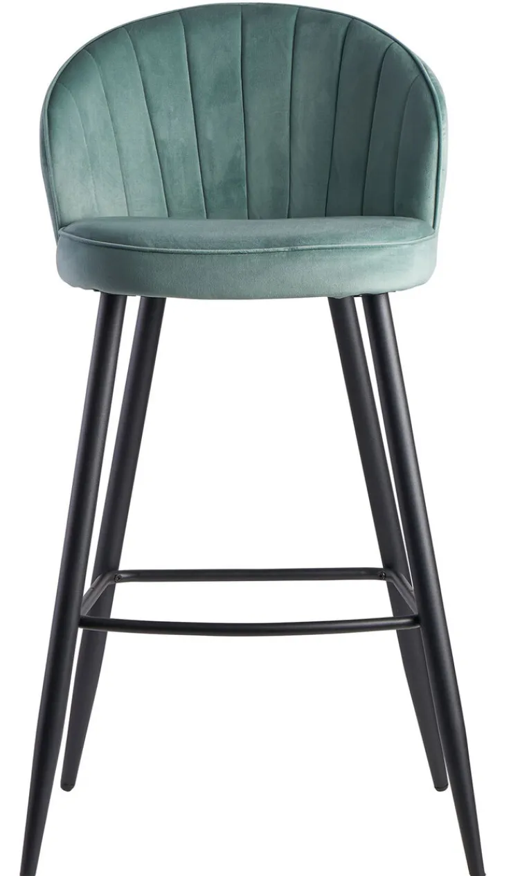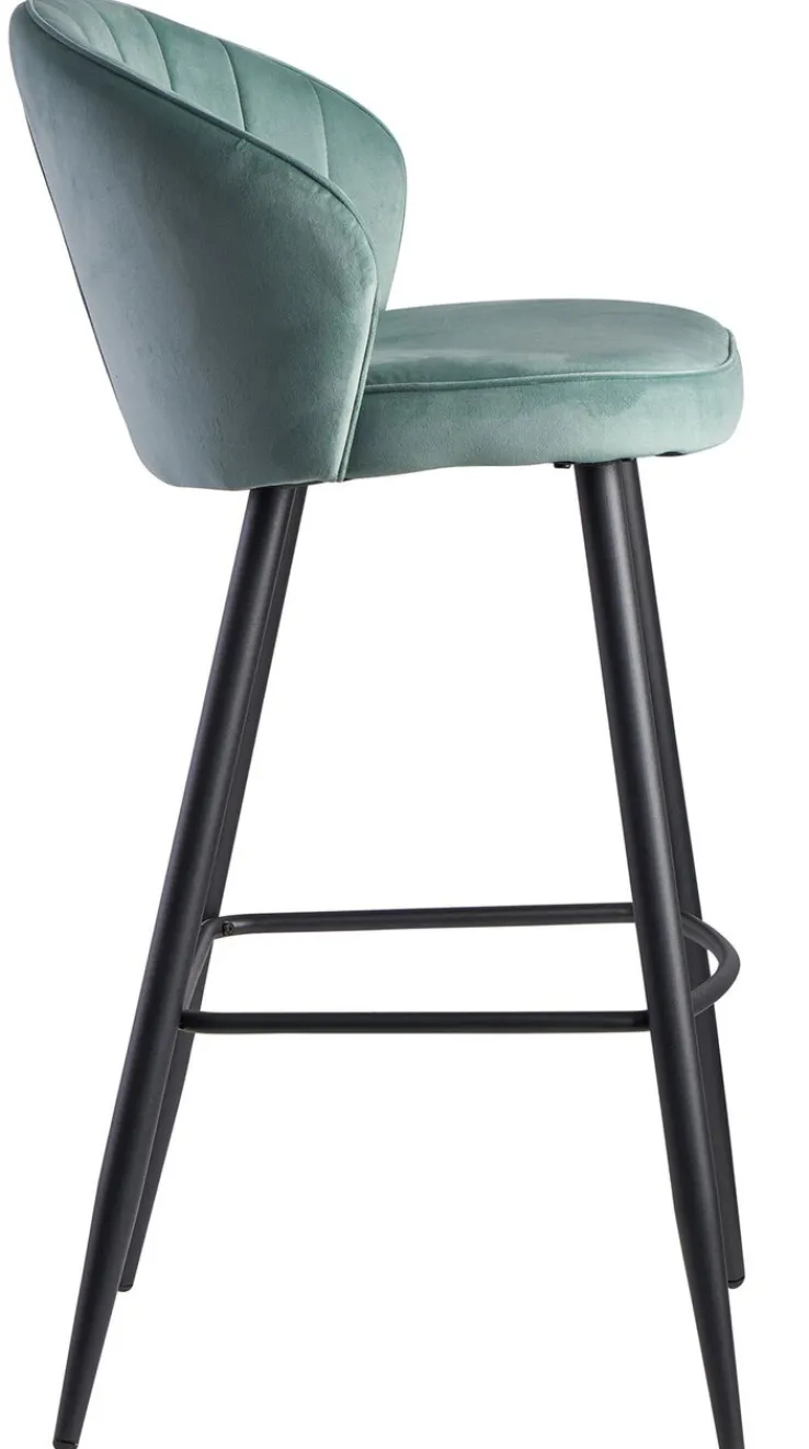 Mit dem schwarz/grünen Barhocker mit Rückenlehne und Samt-Bezug kommt ein stylischer Eyecatcher in die Hausbar oder an den Küchentresen. Der Hocker überzeugt jedoch nicht nur optisch, er bietet zudem einen guten Sitzkomfort.