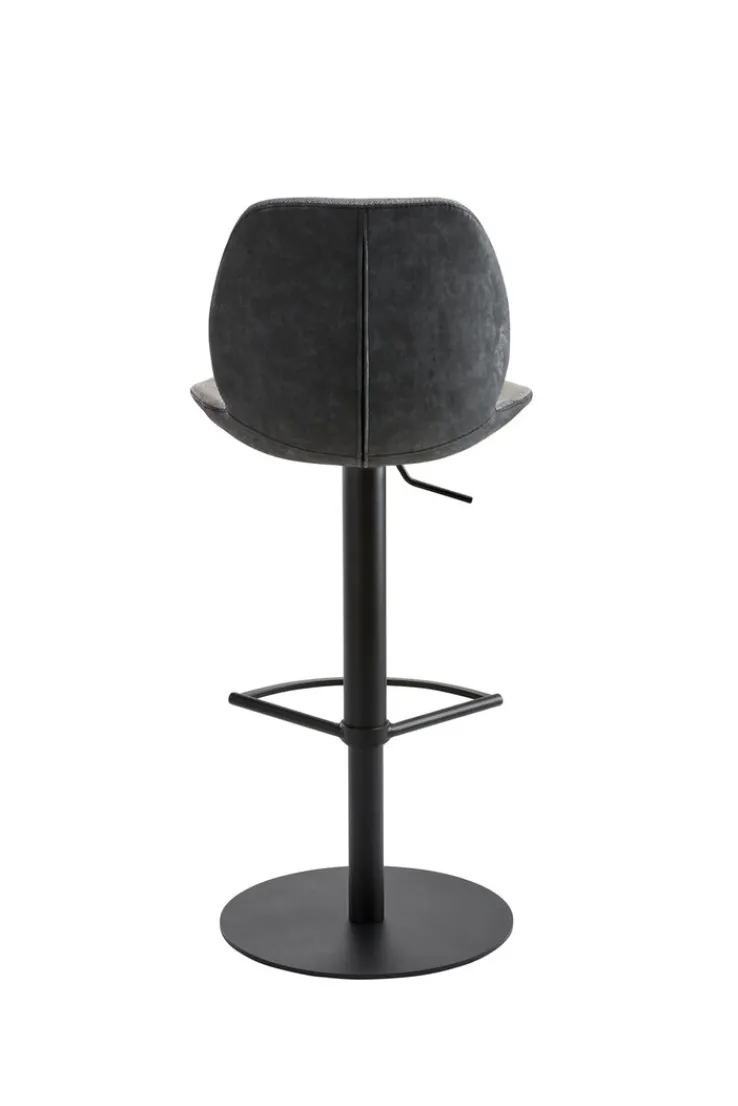 Schwarz koloriert und aus hochwertigem Stahl angefertigt, präsentiert sich das Gestell des Barhockers MYMARCO. Es ist drehbar ausgeführt, ruht auf einem runden Bodenteller, bietet eine ansprechend designte Fußstütze an und stellt einen Sicherheitslift zur stufenlosen Höhenverstellung in Option. Der Lift ermöglicht variable Sitzhöhen im Bereich von 84,5 und 109,5 Zentimeter. Das Stahlgestell gibt einer ergonomisch geformten Sitzschale festen Halt und ermöglicht Drehungen um 360 Grad. Sitz und Rücken sind mit bequemen Polstern versehen und auf der Innenseite mit meliertem Stoff in Schwarz und Anthrazit bezogen. Außen ist die Sitzschale mit schwarzen Kunstleder bekleidet. Mit bis zu 120 kg getesteter Belastbarkeit setzt sich der Barhocker MYMARCO als robustes und langlebiges Möbelstück in Szene.