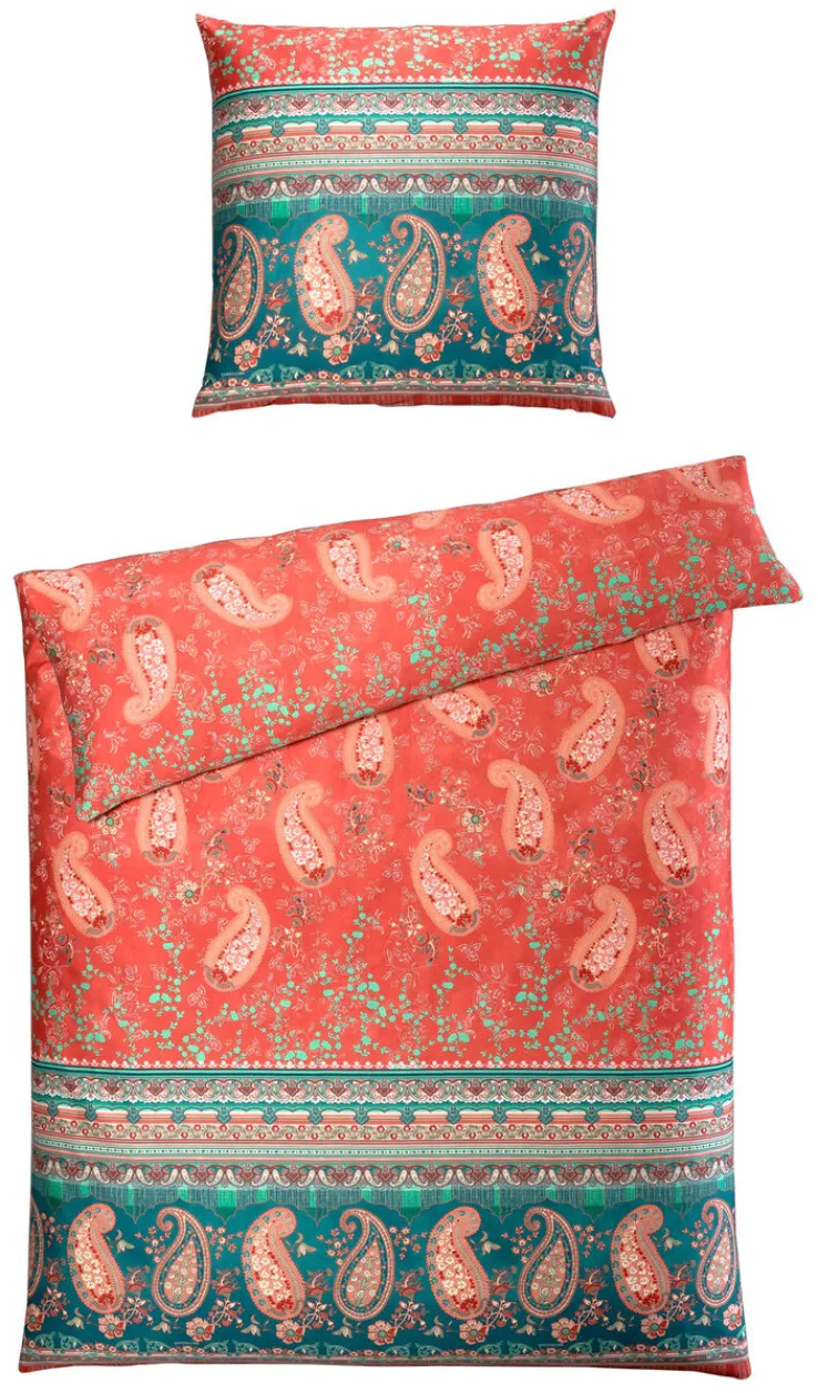 Die 2-teilige Garnitur ANACAPRI V1 besteht aus reiner Baumwolle im orientalischen Paisley Muster. Der Satin verspricht einen super weichen Komfort. Die hochwertige Bettwäsche ist Made in Italy by bassetti und Schadstoffgeprüft nach Öko-Tex-Standard 100. Zertifiziert ist sie als Textiles Vertrauen-Ökotex. Sie können die Satin-Bettwäsche bei 60 °C in der Maschine waschen. Sie ist zudem trocknergeeignet und pflegeleicht. Das Be- und Abziehen geht Ihnen durch den praktischen Reißverschluss leicht von der Hand. Alternativ finden Sie in Ihrem porta! Online Shop diese exklusive Bettwäsche auch in Blau.