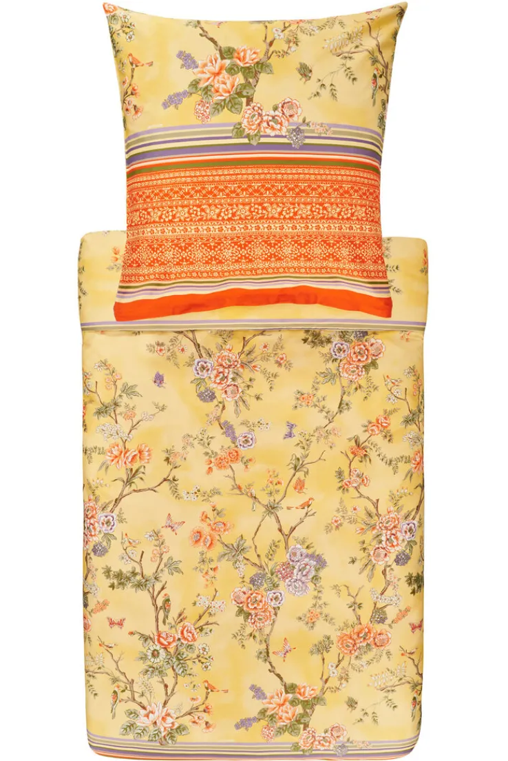 Die 135 x 200 cm große bassetti Satin-Bettwäsche PALLANZA in Gelb überzeugt mit einem romantischen Blumenmuster und bietet zudem das ganze Jahr über ein komfortables Schlafgefühl.