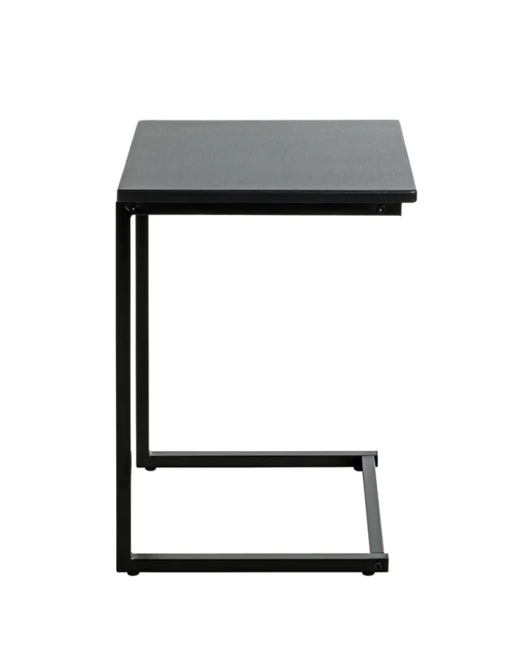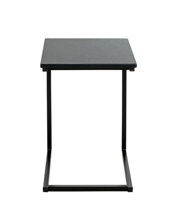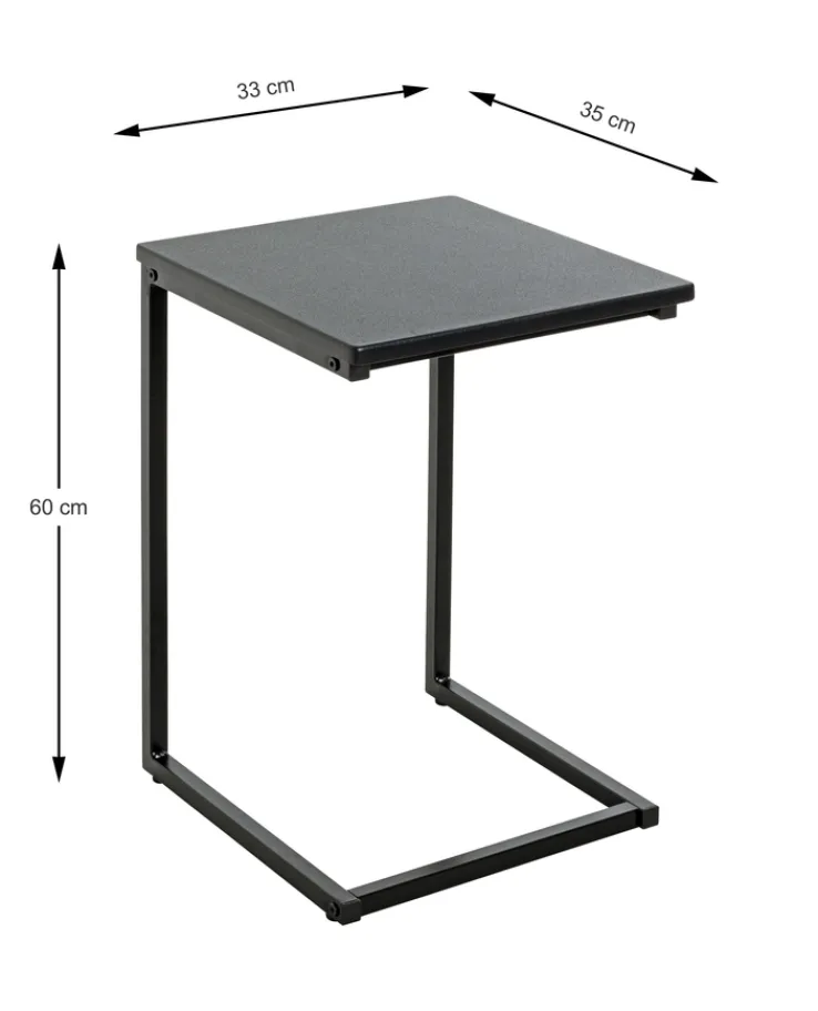Der schwarze Beistelltisch hat eine Größe von 33 x 60 x 35 cm. Mit einer maximalen Belastbarkeit von 10 kg eignet sich das Produkt unter anderem als Ablage von Dekorationsartikeln und Zeitschriften.