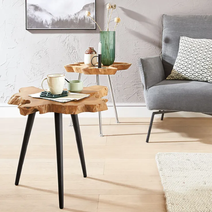 Mit diesem Beistelltisch zieht ein einzigartiges Möbelstück in aufwendiger Gestaltung ins Ambiente ein. Dank des natürlichen Flairs passt der schicke Tisch zu Polstermöbeln in jeder Ausführung und lässt sich mühelos mit vorhandener Einrichtung kombinieren.