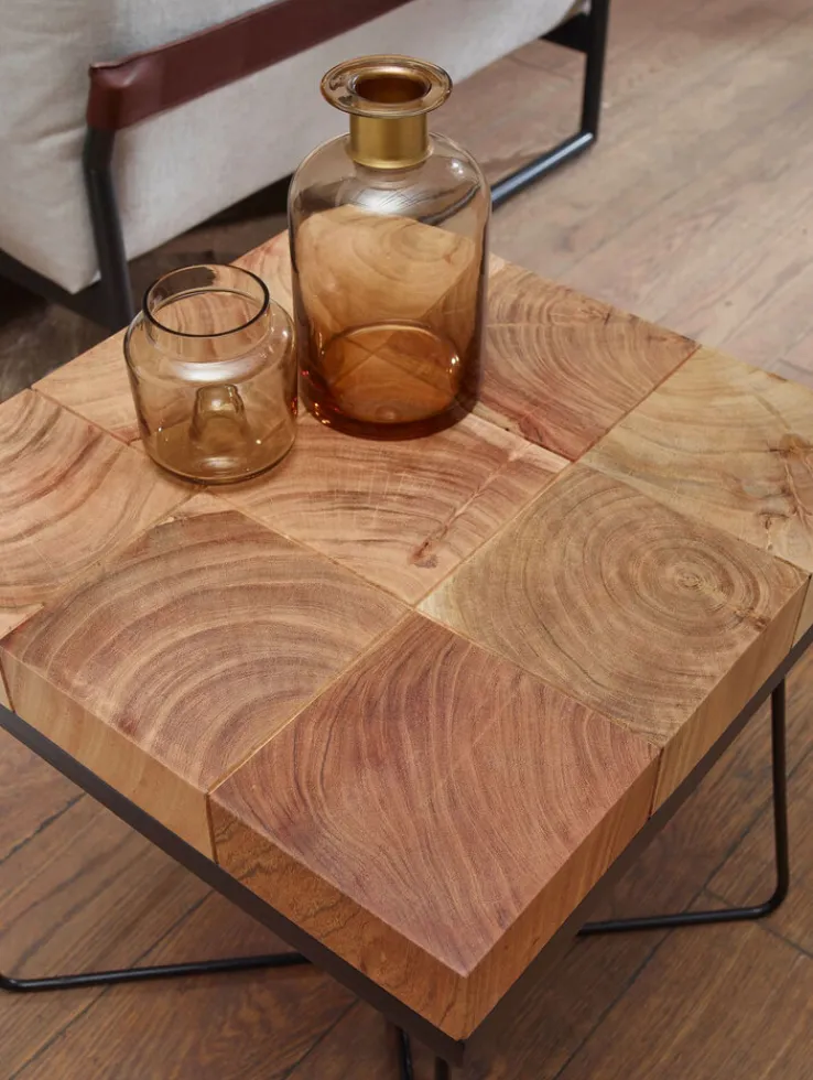 Mit dem ausgefallenen Beistelltisch, welcher in der Größe 45 x 45 cm gefertigt und aus dem Holz Akazie in Schwarz designt ist, lässt sich im Interieur zusätzliche Ablagefläche gewinnen. Der Beistelltisch verleiht dem Wohnzimmer eine exotische Note. Des Weiteren kann er im Esszimmer – zum Beispiel für die Aufbewahrung von Flaschen und Gläsern – verwendet werden.