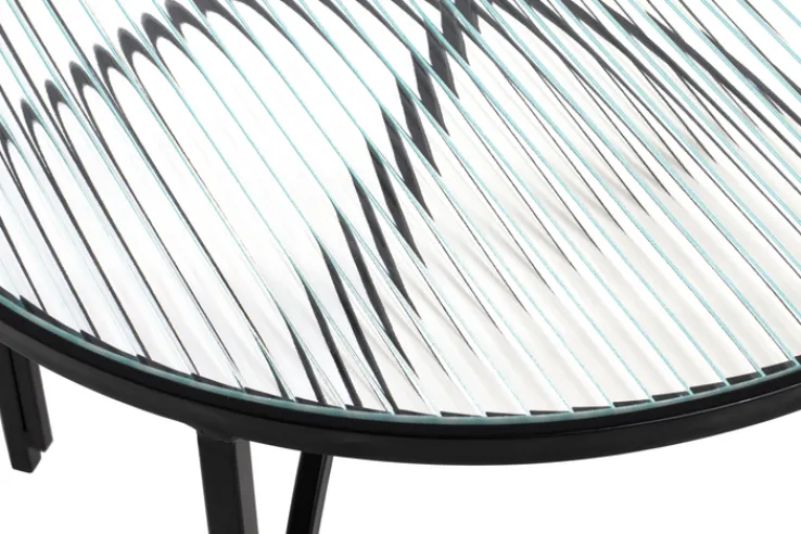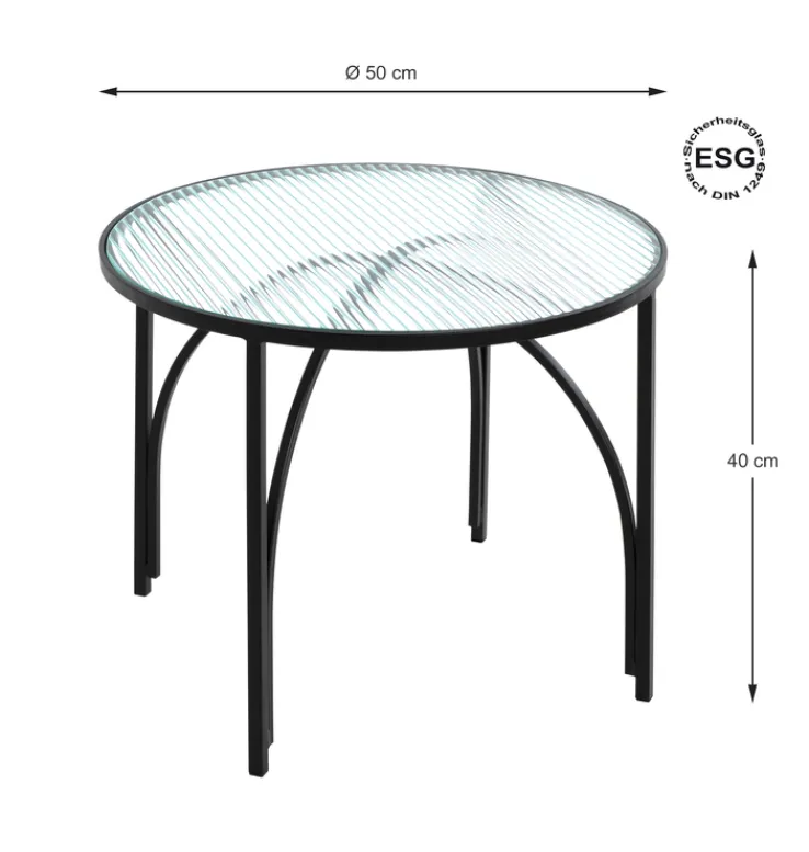 Kleinere Tische fallen in Wohnräumen selten auf. Das ist bei diesem Beistelltisch dank seines stilvollen Designs anders. Das Vierfußgestell aus lackiertem Metall präsentiert sich mit geschwungenen Formen. Dadurch wirkt der Tisch leicht und ist doch sehr stabil. Die transparente Tischfläche aus Sicherheitsdekorglas ist ein Blickfang. Sie fängt das Licht ein und sorgt für interessante Effekte. Zudem erweist sich der Tisch als nützlich. Die Abstellfläche bietet reichlich Platz für Snacks, Printmedien oder Handy.