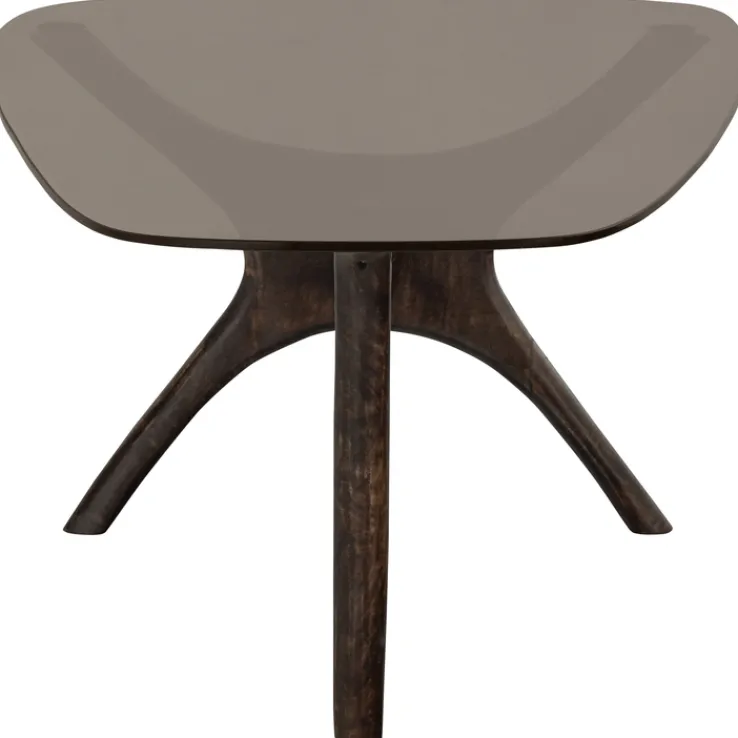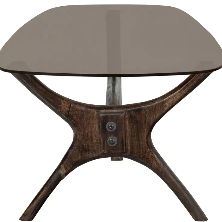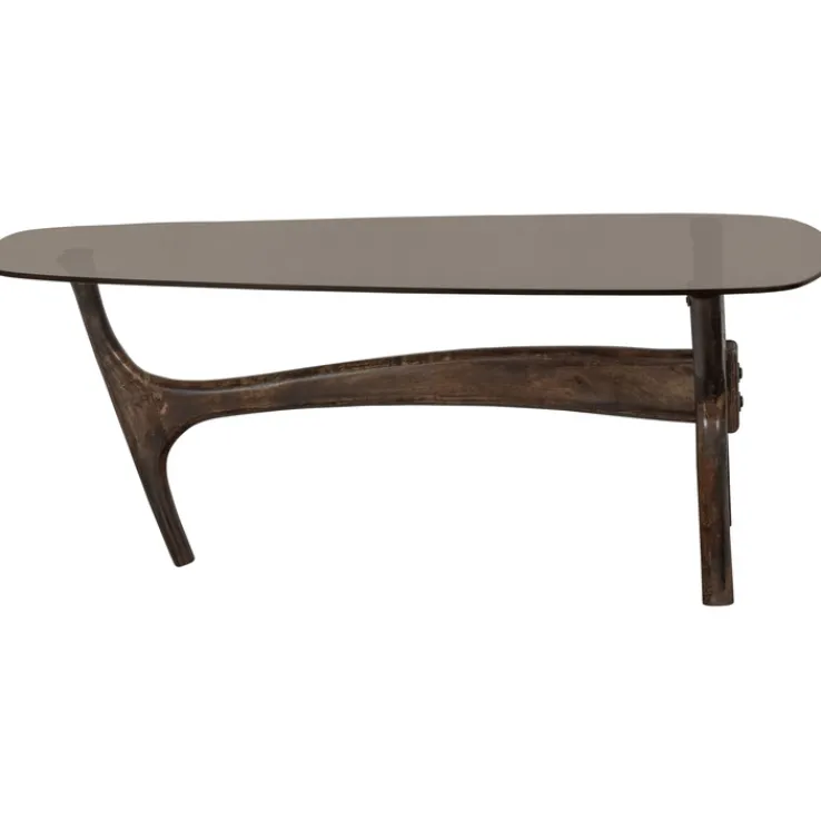 Beistelltisch FLASH in der Ausführung Mangoholz / Farbglas braun punktet mit einem trendstarken, organisch geformten Design und ist 110 x 60 cm groß. Er ist viel mehr als nur eine praktische Ablage und ein überaus dekorativer Blickfang.