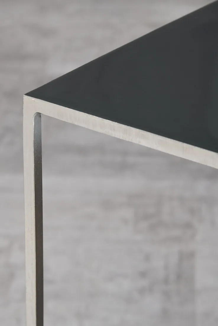 Eine Ablagefläche, wo auch immer sie gerade gebraucht wird – das ist der Beistelltisch FRELA. Er besteht aus drei Tischen in verschiedenen Größen, die Höhen sind 35, 40 und 45 cm. Sie bestehen komplett aus Metall und sind somit absolut robust, pflegeleicht und langlebig. Die Gestelle sind silberfarbig und die Platten schwarz lackiert.
