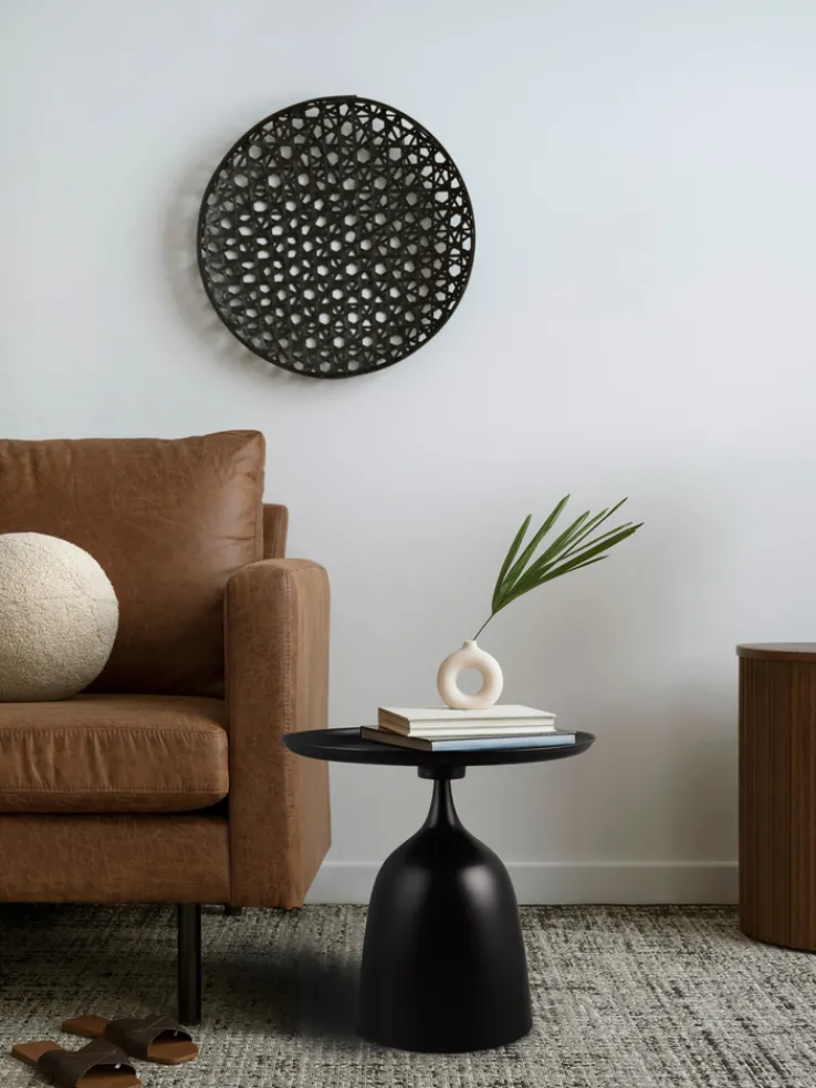 Der Beistelltisch MONA in Schwarz mit den Maßen 48 x 44 x 48 cm überzeugt mit seinem eleganten Retro-Design und einer funktionalen Vielseitigkeit. Er ist aus hochwertigem Metall gefertigt, überzeugt mit stabiler Konstruktion und wirkt dennoch leicht und filigran.