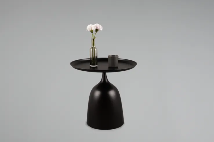 Die runde Tischplatte erinnert an ein Serviertablett und ruht auf einem kunstvoll geformten Gestell mit massivem Fuß. Durch sein minimalistisches Design fügt sich der Beistelltisch MONA harmonisch in verschiedene Wohnstile ein. Ob als stilvolle Ablage im Wohnzimmer, als praktischer Nachttisch im Schlafzimmer oder als dekorativer Akzent im Eingangsbereich, der Tisch ist ein echtes Highlight, das jedem Raum einen Hauch von Retro-Chic verleiht.