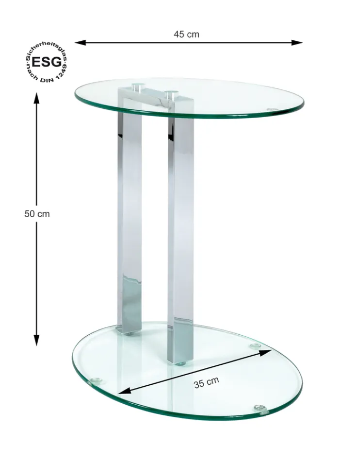 Der 45 x 50 x 35 cm große Beistelltisch ARTUR 2 45 x 50 x 35 cm begeistert mit einem topmodernen, minimalistischen Design und zwei eleganten Glas-Platten.