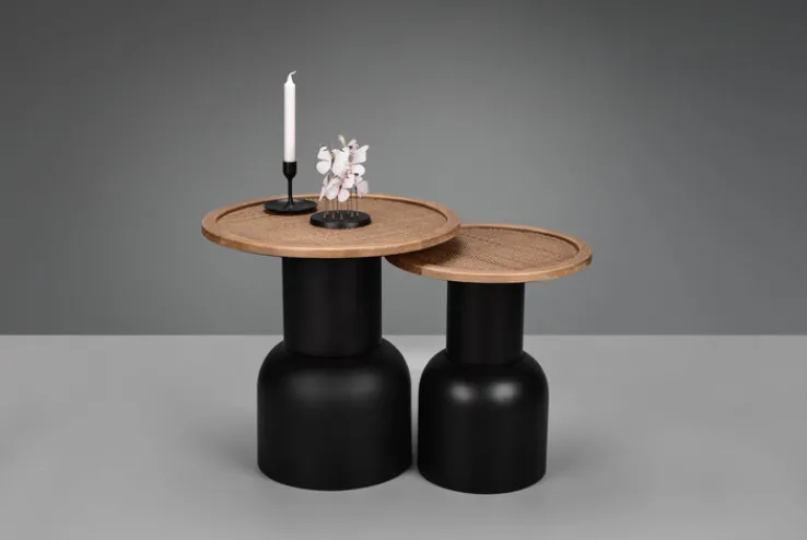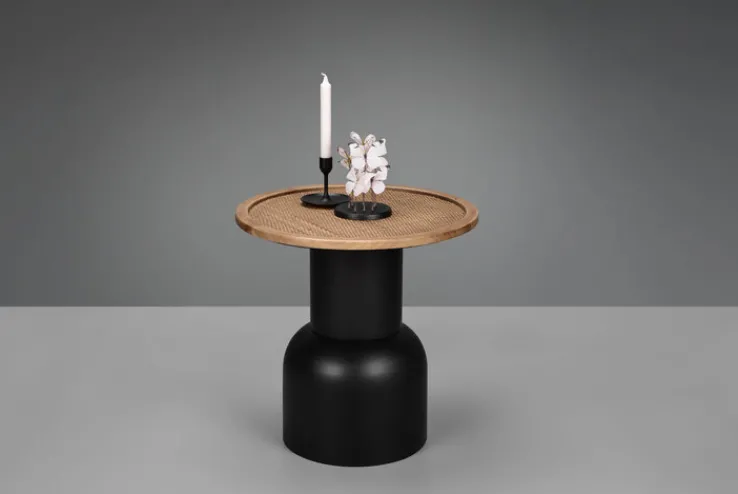 Der runde Beistelltisch RONJA hat die Maße 40 x 46 cm und ist ein dekoratives Accessoire für moderne und klassische Einrichtungen. Durch seine elegante Form ist der braun- und schwarzfarbige Tisch der Blickfang für geschmackvoll eingerichtete Wohn- oder Esszimmer. Mit einer großen Topfpflanze, einer Blumenvase oder einer Skulptur dekoriert, kommt der Tisch besonders gut zur Geltung. Der Beistelltisch sorgt für eine gemütliche Atmosphäre.