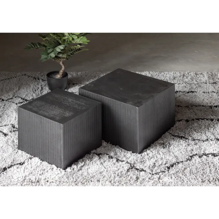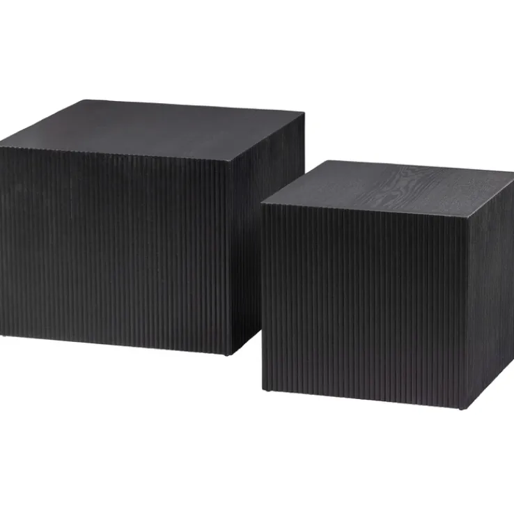 Beistelltisch-Set SANNE 2-teilig quardratisch Kiefer-Dekor schwarz lackiert