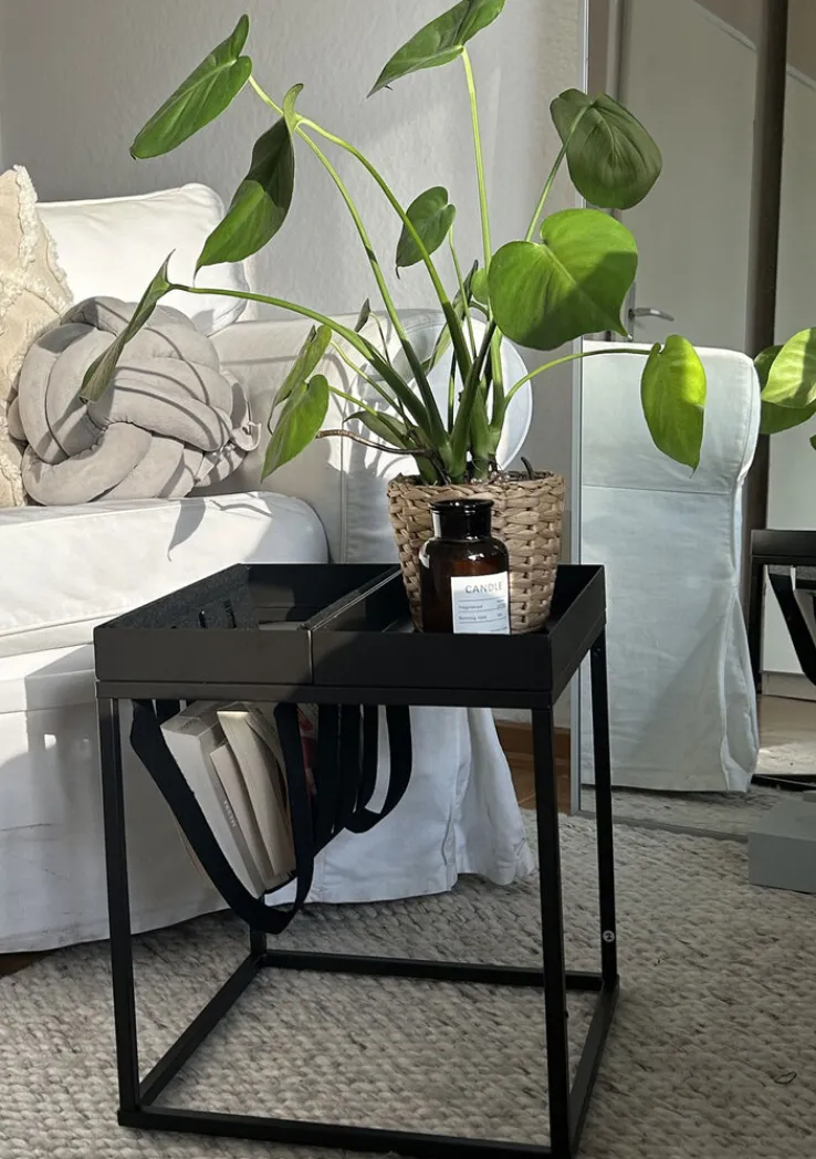 Diese finden in den aus Filz gearbeiteten Schlingen Platz. Somit wird jederzeit ein schneller Zugriff ermöglicht. Ideal, um den Beistelltisch neben einem Sessel zu platzieren. Das aus Metall gefertigte Gestell ist mit einer edlen Pulverbeschichtung versehen. Diese ist nicht nur wirkungsvoll, sondern sorgt auch effektiv dafür, dass das darunter befindliche Gerüst nicht korrodiert.