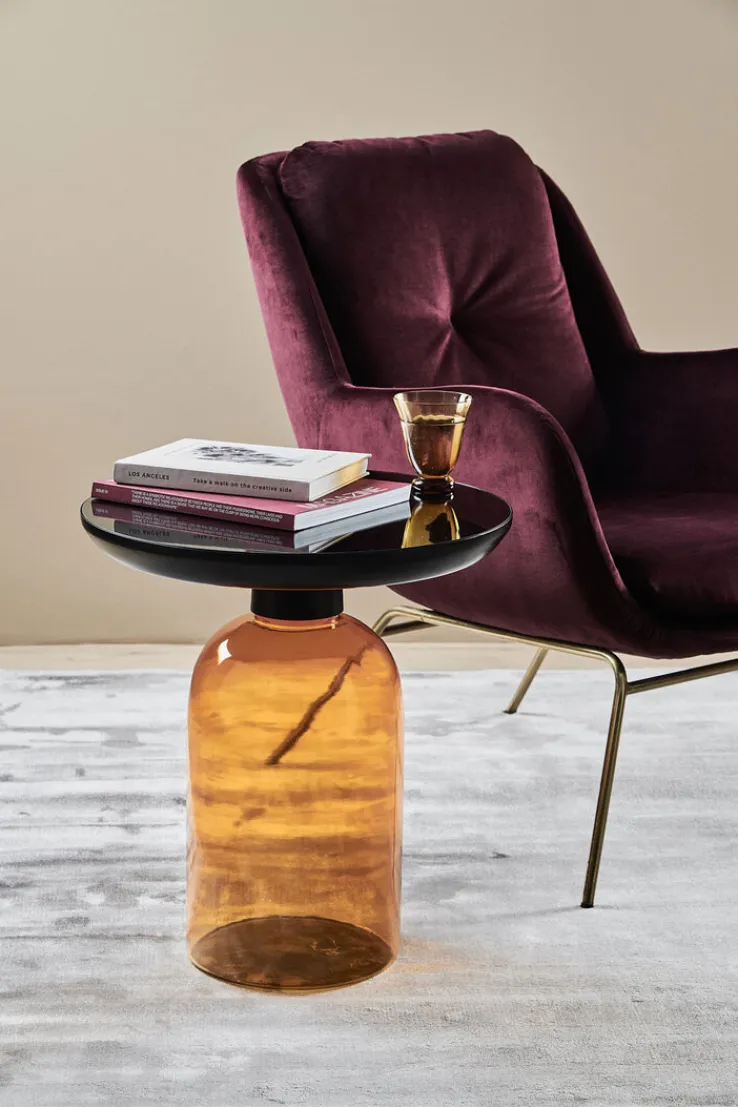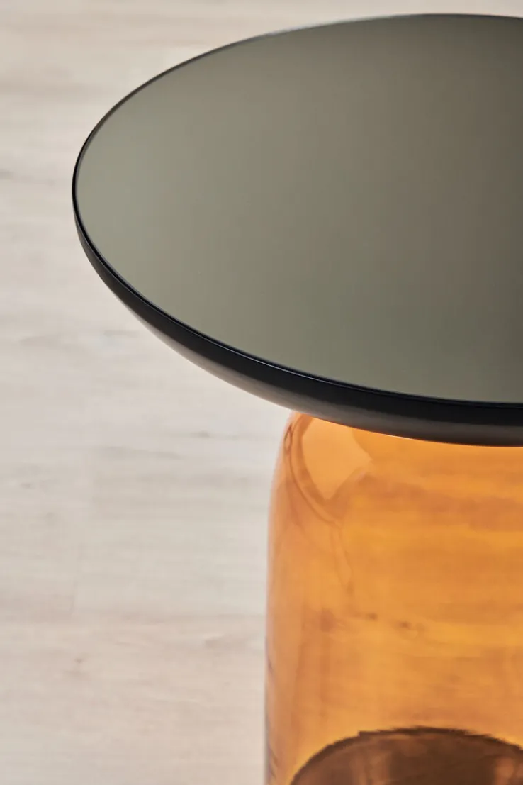 Wer sich für den Beistelltisch entscheidet, sorgt mit Leichtigkeit für Abwechslung im heimischen Wohnzimmer. Dafür sorgt in erster Linie das Säulengestell, das aus orangefarbenem Spiegelglas gefertigt ist. Sein Design erinnert an ein großes Glas. Bücher, Zeitschriften oder ein Getränk liegen dank der runden Tischfläche immer in Reichweite. Mit seiner einzigartigen Optik kann der kleine Tisch vor allem in Einrichtungen punkten, in denen moderne Formensprachen hoch im Kurs stehen.
