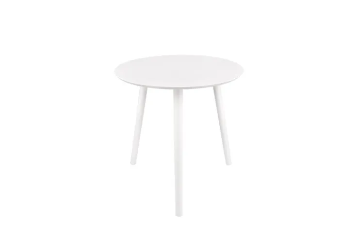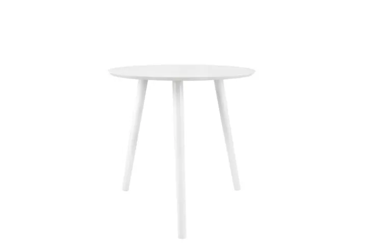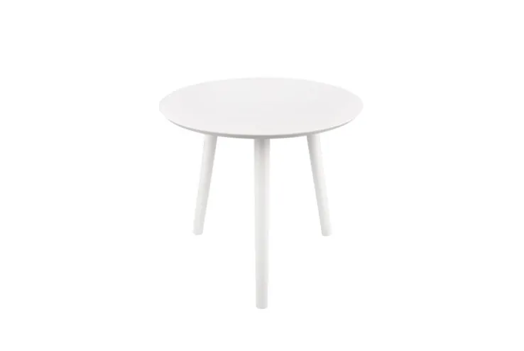 Das attraktive Set aus zwei weißen Beistelltischen besteht aus Metall und einer Holzwerkstoffart. Es wiegt ein Kilogramm. Die runde Tischplatte ist eine mitteldichte Faserplatte (MDF), die bei Setartikel 1 einen Durchmesser von 50 Zentimetern hat, bei einer Höhe von 50 Zentimetern. Bei Setartikel 2 misst die runde Tischplatte 45 Zentimeter im Durchmesser, bei einer Höhe von 40 Zentimetern. Beide Setartikel vom Beistelltisch VILMA verfügen jeweils über drei nach außen zeigende weiße Tischbeine.