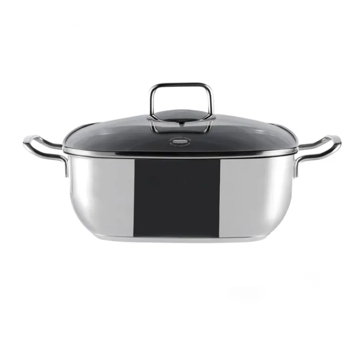 Mit einem Fassungsvermögen von 6.500 ml und den Maßen von 280 cm in Breite und Tiefe sowie einer Höhe von 100 cm eignet sich die Servierpfanne für vielseitige Anwendungen in der Küche. Sie ist für alle Herdarten, einschließlich Induktion, geeignet. Das Material besteht aus robustem Edelstahl, was eine lange Lebensdauer unterstützt. Das Produkt ist der Marke Berndes zugeordnet.