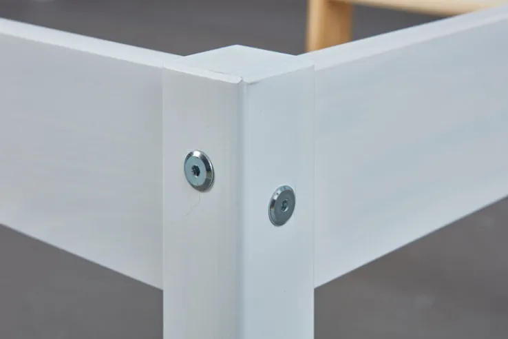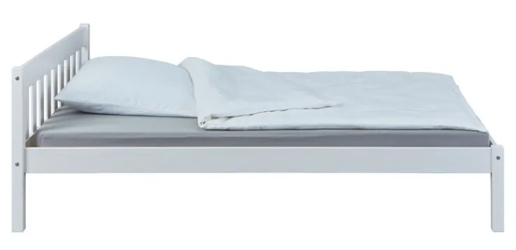 Das schlichte und in seiner Schnörkellosigkeit dennoch elegante Design erlaubt es, das Bett LAURI in unterschiedliche Einrichtungsstile zu integrieren. Insbesondere mit einer aus Holz gefertigten Einrichtung oder mit Böden oder Wänden aus Holz harmoniert dieses Bettmodell besonders gut. Der Rahmen aus massivem Kiefernholz ist in zeitlosem Weiß lackiert. Durch ein klassisches Sprossendesign des Kopfteils wirkt dieses Bettmodell weniger raumgreifend als manch andere Betten. Das Bett LAURI ist mit bis zu 100 kg Gewicht belastbar.