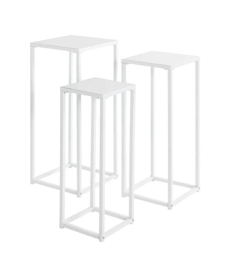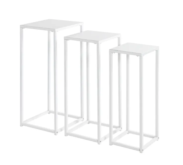 Die unterschiedlich hohen Blumensäulen können zusammen oder jede für sich platziert werden. Einzelne Tischchen bilden eine schöne Bühne, um eine Topfpflanze zur Geltung zu bringen. Auch sonstige liebgewonnene Dekostücke lassen sich darauf arrangieren. Ebenso dürfen die Säulen als Beistelltisch dienen für Handy, Getränke, Zeitschriften oder Bücher.