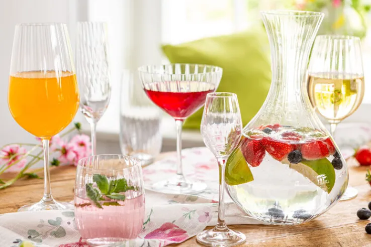 Auch bauchige Rotweingläser, die den Wein atmen lassen, können schlank und elegant wirken. Das beweist BOHEMIAN SELECTION mit dem Rotweinglas WATERFALL. Und tatsächlich: Das unten bauchige Glas läuft oben schlank zu, wie die Strömung eines Wasserfalls ziehen sich die eingearbeiteten Riffeln durch das Glas. Ein sehr zierlich gearbeiteter Stiel hält das Glas auf dem sparsam gestalteten Fuß. Die Gläser sind jeweils 24,5 Zentimeter hoch und bringen eine einfache Eleganz auf jede Tafel, festlich und doch verspielt passen sie zum abendlichen Rotweingenuss unter Freunden genauso wie zur feierlichen Tafel bei repräsentativen Treffen.