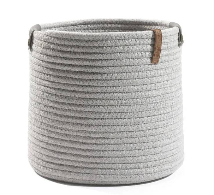 Mit dem handlichen, hellgraufarbigen Aufbewahrungskorb von casaNOVA fällt es leicht, Ordnung zu halten. Kleinteile finden in dem wunderschönen Korb in Seiloptik ebenso Platz wie Bastel- und Hobbyzubehör. Mit einem Durchmesser von 26 cm und einer Höhe von 24 cm lässt sich der Korb nach Belieben in einem Regal oder auf dem Tisch platzieren. Die griffige Haptik des Korbes aus Mischgewebe sorgt dafür, dass er beim Tragen gut in der Hand liegt. Mit seiner neutralen Optik harmoniert der strukturierte Korb mit nahezu jedem Wohnstil und macht in allen Räumen des eigenen Zuhauses eine ausgezeichnete Figur. Wer möchte, kann den Aufbewahrungskorb mit weiteren Körben der gleichen Linie in unterschiedlicher Größe zu einer dekorativen Gruppe kombinieren.
