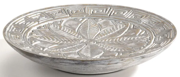 Die runde casaNOVA Deko Platte im Farbton weiß-gewaschen besteht aus hochwertigem Polyresin und hat eine Größe von 30 x 5,2 x 30 cm. Mit ihrer aufwändigen Verzierung und der rustikal anmutenden Farbe zieht die flache Dekoschale alle Blicke auf sich. Ein Hit ist die Deko Platte schon nur für sich alleine, zudem lässt sie sich auch als Obstschale verwenden. Im edlen Boho-Look gehalten, harmoniert die Platte mit verschiedenen Einrichtungsstilen und ist zu jeder Jahreszeit ein attraktives Wohn-Accessoire.