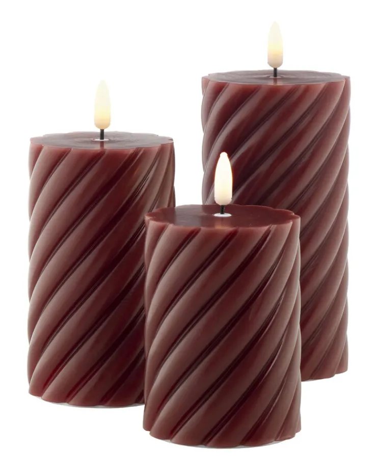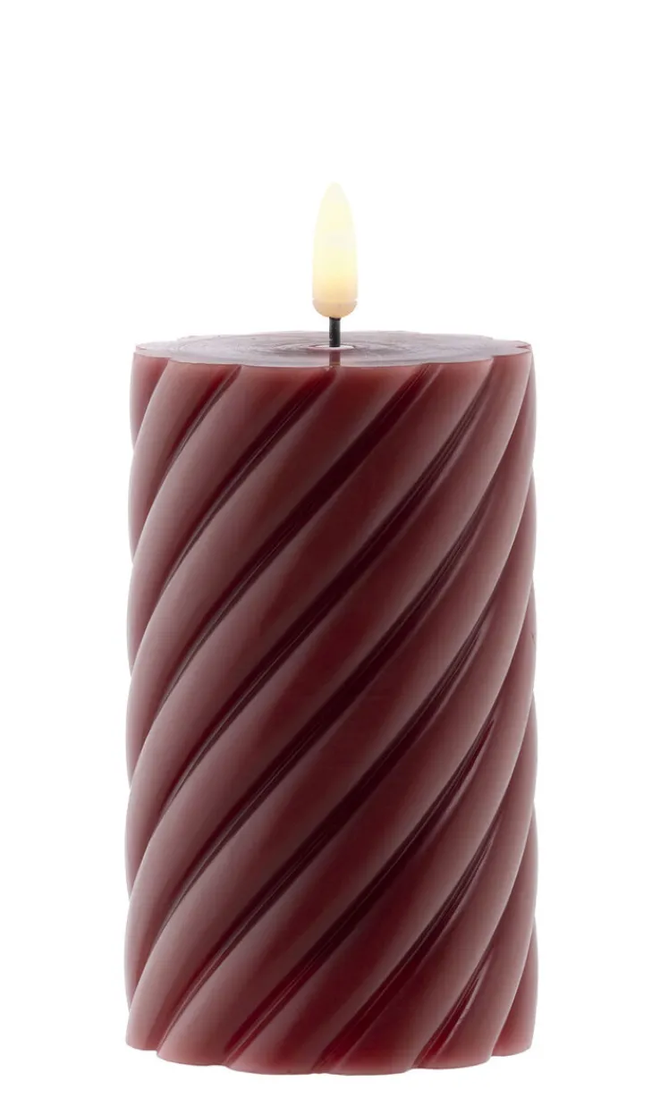 Die 15 cm hohe Kerze hat einen Durchmesser von 7,5 cm und ist aus echtem Wachs gefertigt. Sie zeigt ein schönes, gleichmäßiges LED-Licht und ist batteriebetrieben. Das warme Licht verbreitet im Wohnzimmer oder in der Diele eine angenehme Helligkeit. Das Besondere an der Kerze Drill ist ihre gewundene Form. Diese Stumpenkerze ist auch die ideale Wachskerze für die Advents- und Weihnachtszeit!