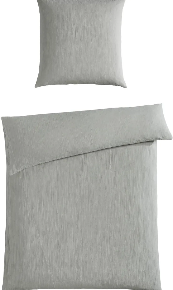 Die Baumwoll-Bettwäsche GRETA Grau gibt es auch in Weiß, Salbeigrün und Mauve. Die Maße des Bettbezugs betragen 135 x 200 cm und die des Kissenbezugs 80 x 80 cm. Die Bezüge bestehen zu 100 % aus Baumwolle und werden mit Knöpfen an den Enden verschlossen.