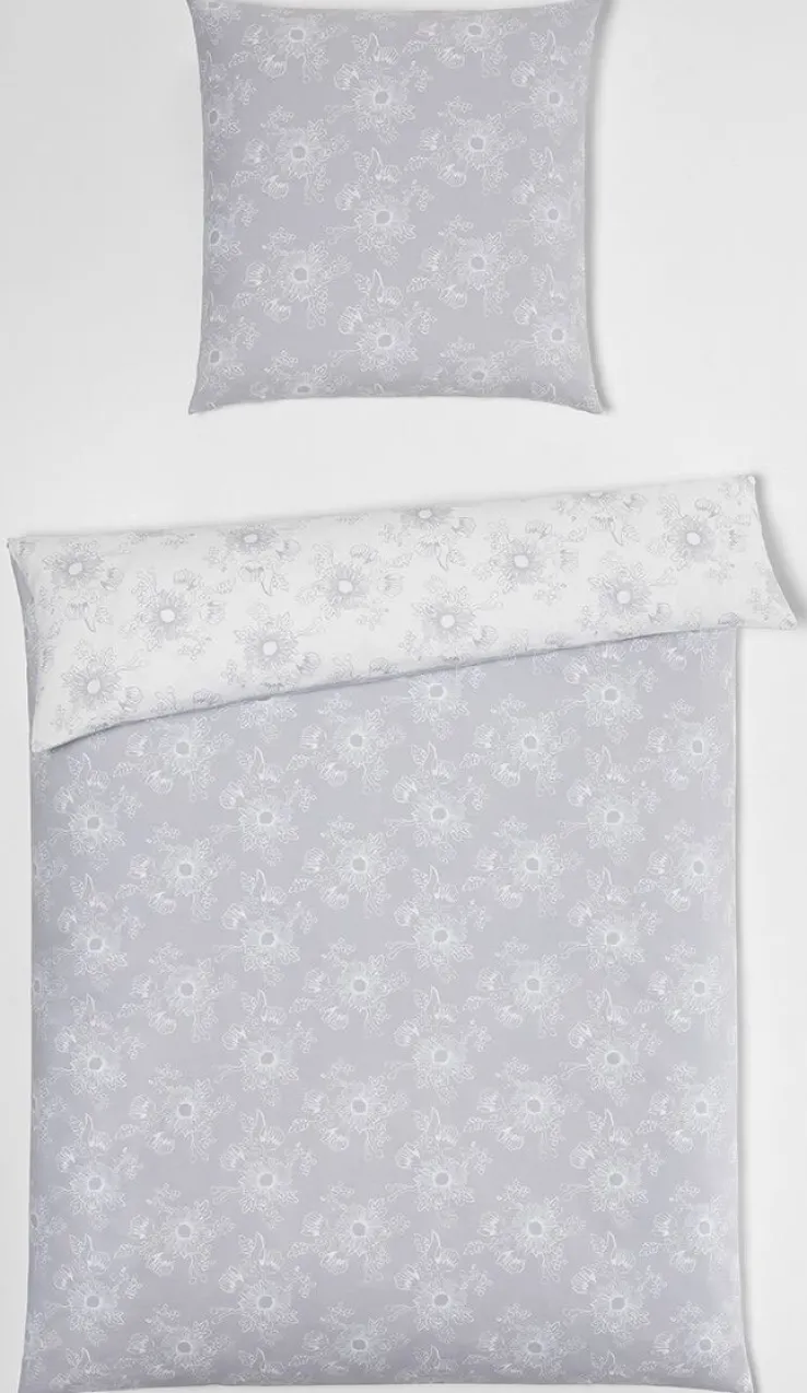 Die graue casaNOVA Renforcé-Bettwäsche KIM für 135 x 200 cm große Einziehdecken zieht mit ihrem eleganten Blumendesign alle Blicke auf sich und sorgt für ein gemütliches Ambiente.