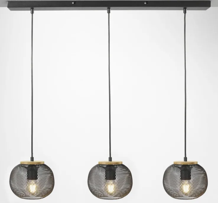 Die Lampenschirme des Balkenpendels RESI sind in Gitteroptik gefertigt und bestehen aus Metall. Die Oberflächen sind mehrfach lackiert. Der Abschlüsse der Fassungen sind aus naturbelassenem Holz hergestellt. Für die Leuchtmittel bis 40 Watt sind E27-Fassungen eingebaut. Das CE-geprüfte Balkenpendel ist für den Innenbereich geeignet.