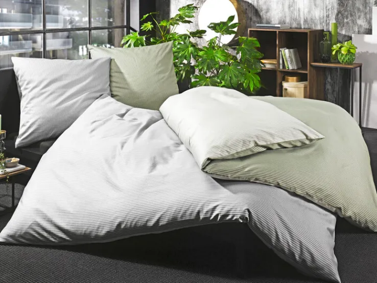 Die hochwertige casaNOVA Satin-Bettwäsche DALIA besteht aus einem feinen und anschmiegsamen Satingewebe, das aus 100 % reiner Baumwolle hergestellt wird. Die praktische Wendebettwäsche ist an beiden Seiten nahezu unifarbig in unterschiedlich hellen Grüntönen gestaltet. Durch das äußerst dezente Linienmuster fügt sich die Bettwäsche in unterschiedliche Varianten der Raumgestaltung universell ein. Sowohl der Bettbezug als auch der Kissenbezug verfügen über einen praktischen Reißverschluss. Für hygienische Frische zu jeder Jahreszeit kann die moderne casaNOVA Satin-Bettwäsche DALIA problemlos bei bis zu 60 Grad Celsius in der Maschine gewaschen werden.