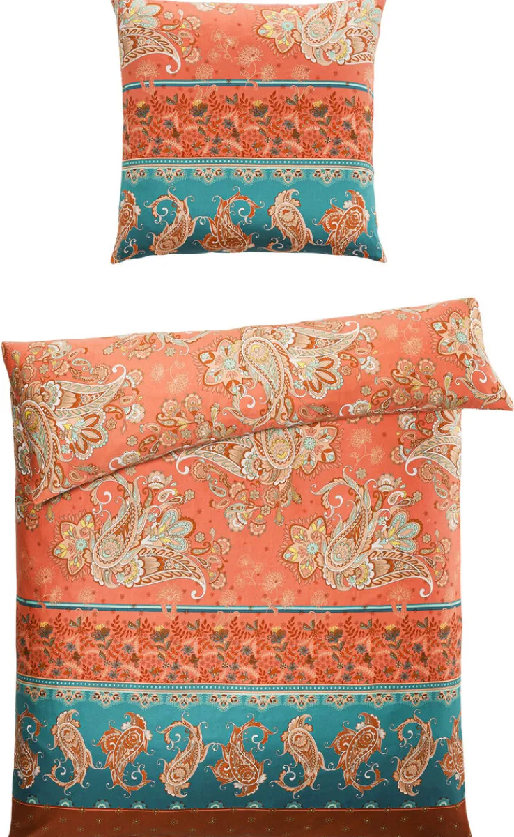 Die Satin-Bettwäsche SUN aus dem Hause casaNOVA in den Maßen 135 x 200 cm besticht durch ihre elegante Optik in der Hauptfarbe Orange. Das Design kombiniert das zeitlose Paisley-Muster mit floralen Motiven.