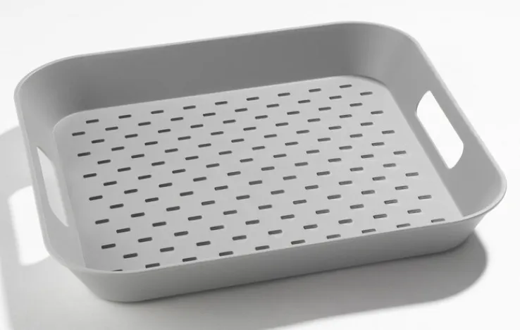 Das Tablett von casaNOVA besteht aus Kunststoff. Aufgrund der grauen Farbgebung wirkt es neutral und fügt sich gut in alle Wohnumgebungen ein. Egal ob in der Küche oder im Esszimmer, es ist eine praktische Präsentierfläche für Speisen, die dank der Rutschfestigkeit des strukturierten Untergrunds nicht so leicht verschüttet werden können.