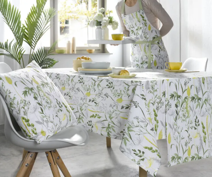 Die Tischdecke KLARA macht mit ihrem grünen und gelben Blumenmuster jedem Esstisch zu einem Blickfang und zaubert eine ansprechende Raumatmosphäre. Sie hat eine 4 cm breite Saumnaht, wodurch sie schön fällt. Ergänzt werden kann die Tischdecke mit weiteren Heimtextilien aus der KLARA-Serie von casaNOVA, sodass sich ein einheitliches Bild ergibt. Die pflegeleichte Baumwoll-Tischdecke ist waschbar bei 40 °C und zudem trocknergeeignet.