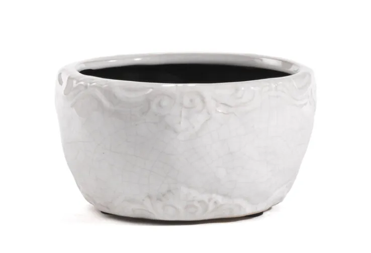 Dieser Umtopf passt bevorzugt in ein Landhaus-Ambiente, in dem antike Gegenstände gefragt sind. Doch ist der Übertopf derart gestaltet, dass er auch mit anderen Interieurs harmoniert. So punktet er im Wintergarten oder in einem Wohnraum. Sehr apart sieht eine Grünpflanze oder eine Blühpflanze darin aus, denn die Farben von Pflanze und Übertopf ergeben ein wunderbar kontrastierendes Ensemble, das dennoch ausgeglichen wirkt. Feine Strukturen, die gebrochenen Linien der Keramik und der angenehme Weißton sind weitere Merkmale dieser ausgefallenen Dekoration.