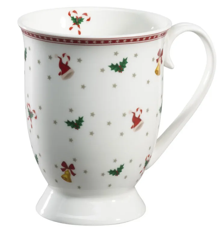 Die weihnachtliche Kaffeetasse aus der Kollektion Weihnachtsglanz by casaNOVA besteht aus dem Material New Bone China. Sie hat eine schöne Form mit leicht nach außen gewölbten Rand, der von einer schmalen Bordüre mit Sternchen verziert ist. An dem elegant geschwungenen Henkel lässt sich die Tasse gut anfassen und sicher zum Mund führen. Das mehrfarbige Muster ist gleichmäßig auf der Außenseite verteilt und wird von einem einzelnen Motiv am Innenrand der Kaffeetasse ergänzt.