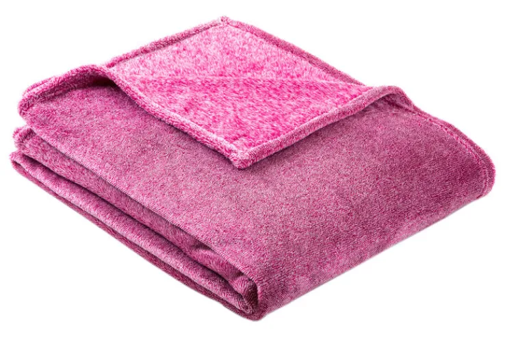Der feine Flausch der Wohndecke TORONTO kommt in dem leuchtenden Farbton Berry besonders gut zur Geltung. Man sieht der weichen Synthetikfaser ihre kuscheligen Eigenschaften förmlich an! Vorder- und Rückseite sind dabei unterschiedlich gestaltet, was dem Stoff eine besondere Lebendigkeit verleiht. Aufgefaltet hat die 150 cm breite Decke eine Länge von 200 cm.