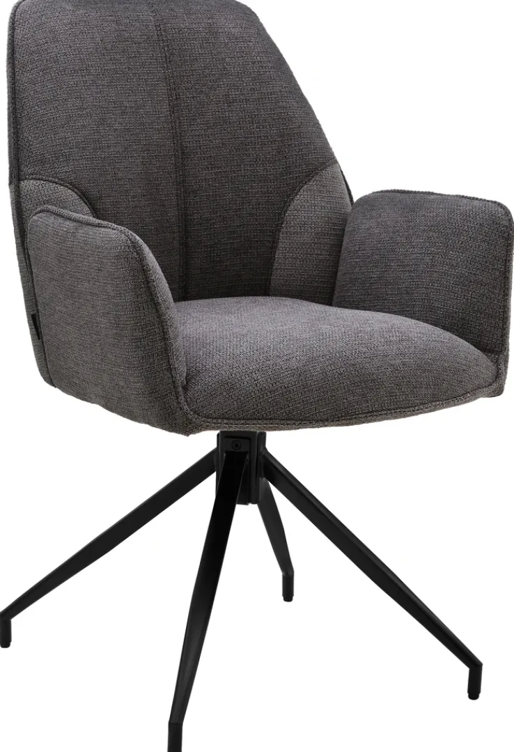 Das pulverbeschichtete Vierfußgestell aus Metall sorgt für Stabilität und ergänzt die moderne Ausstrahlung durch seine mattschwarze Optik. Der Stuhl ist um 360° drehbar und bietet durch die ergonomisch geformte Sitzschale mit integrierten Armlehnen komfortablen Halt. Mit den Maßen 62 cm Tiefe, 59 cm Breite und 88 cm Höhe sowie einem Gewicht von 9,90 kg eignet sich dieses Modell besonders für den Esszimmerbereich.